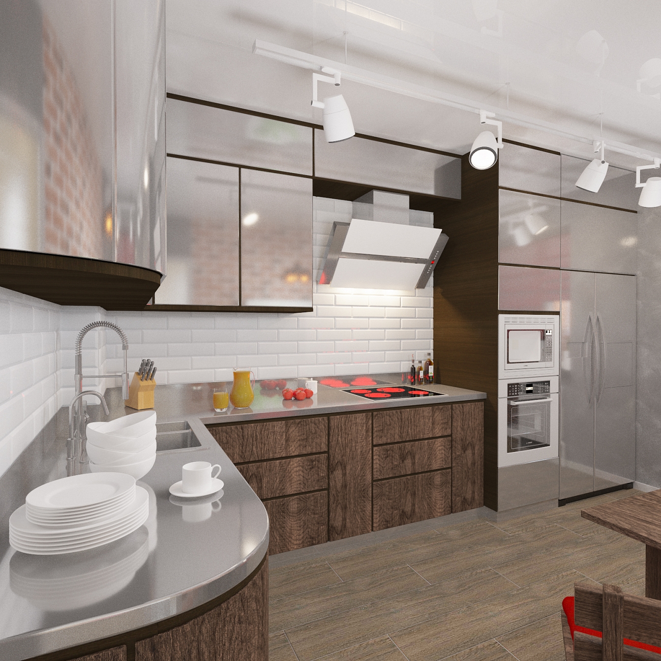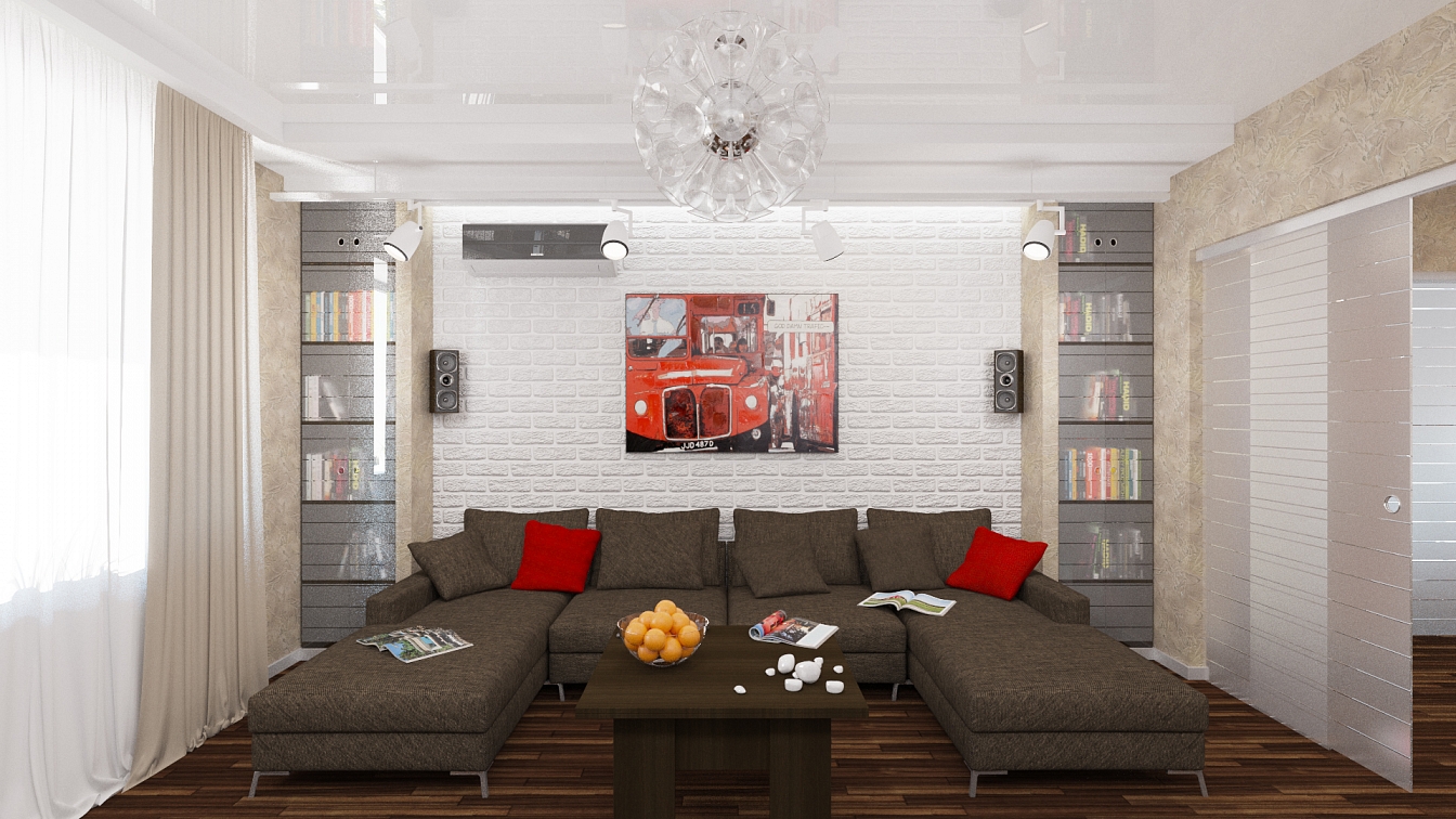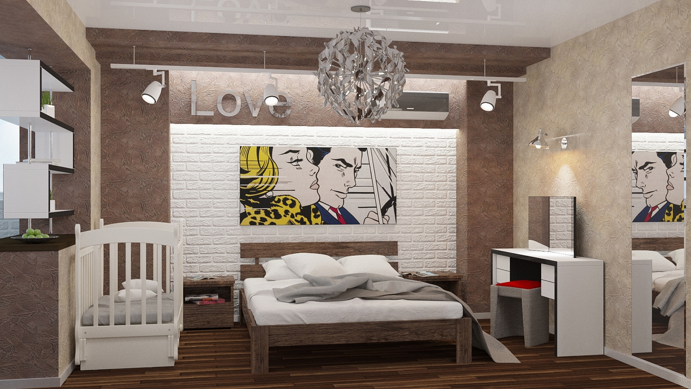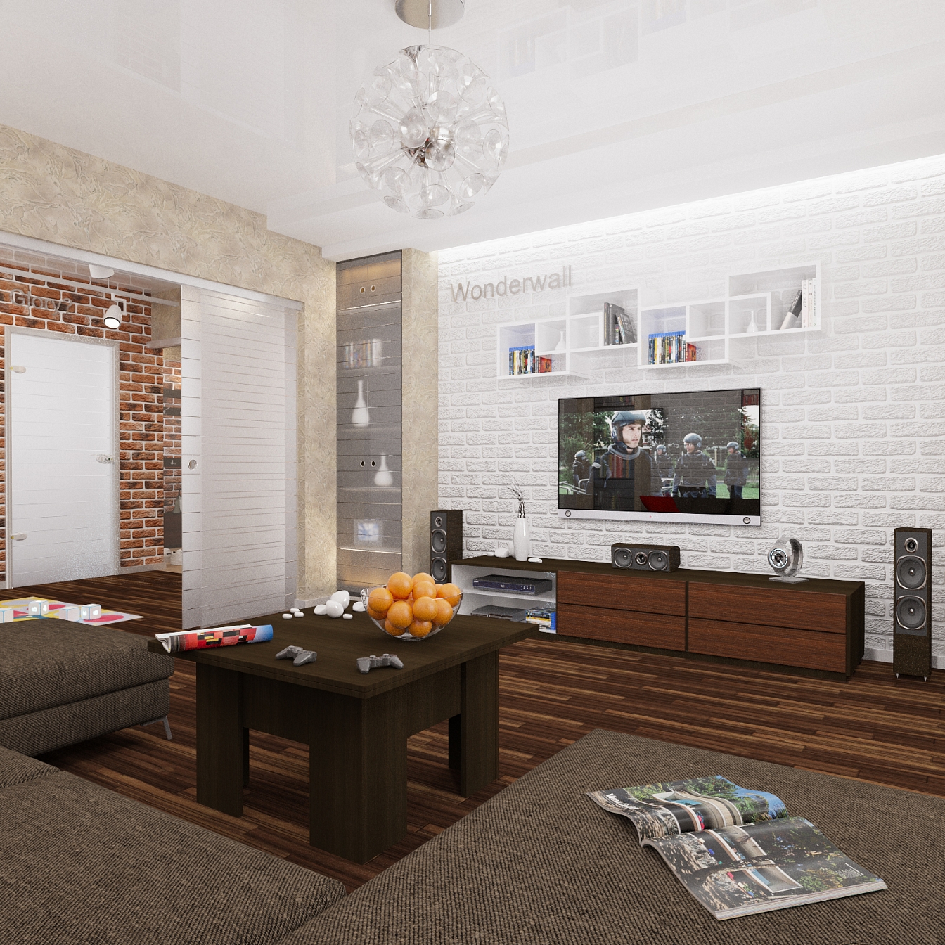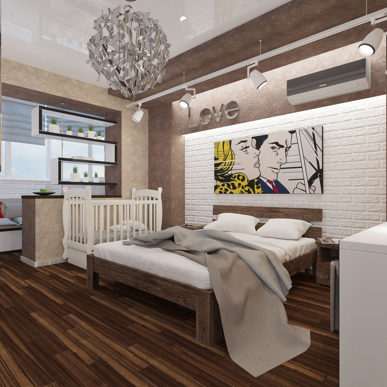 Интерьер квартиры предназначен для молодой семьи с двумя детьми. Предпочтения отдавались прочным, устойчивым материалам, как например, кирпич и декоративная штукатурка с грубой фактурой. Массивное дерево в мебели сочетается со стеклянными дверями и стальными фасадами на кухне. Получилась необычная, стильная квартира.