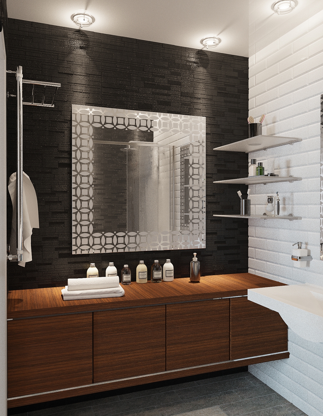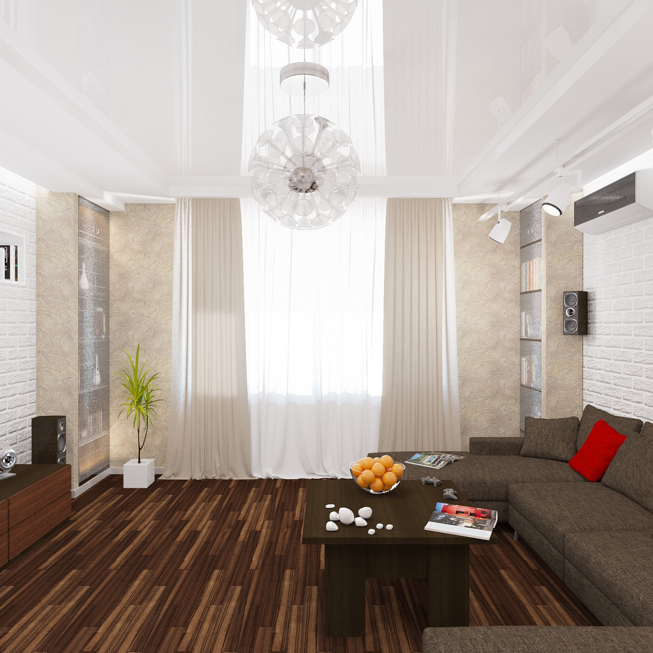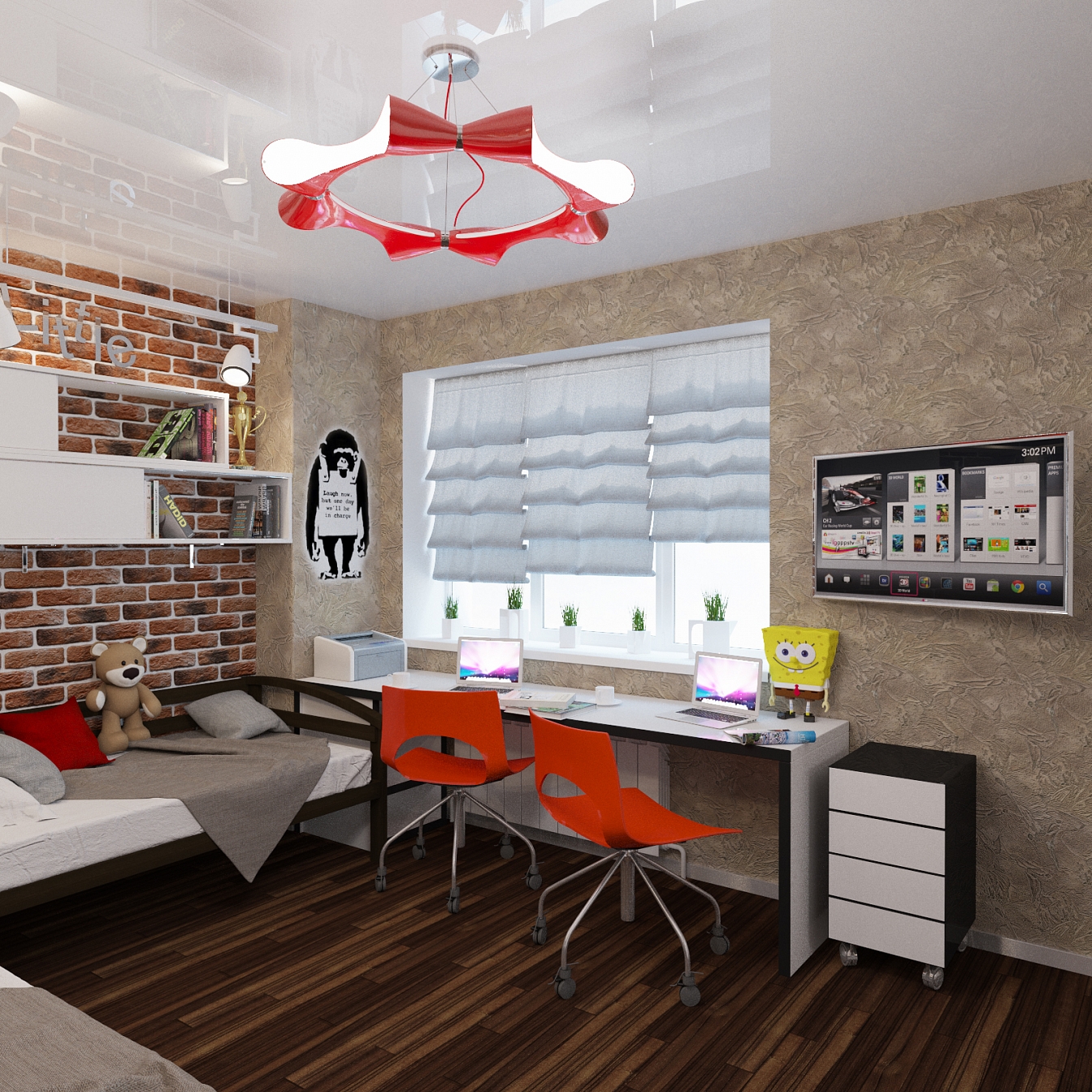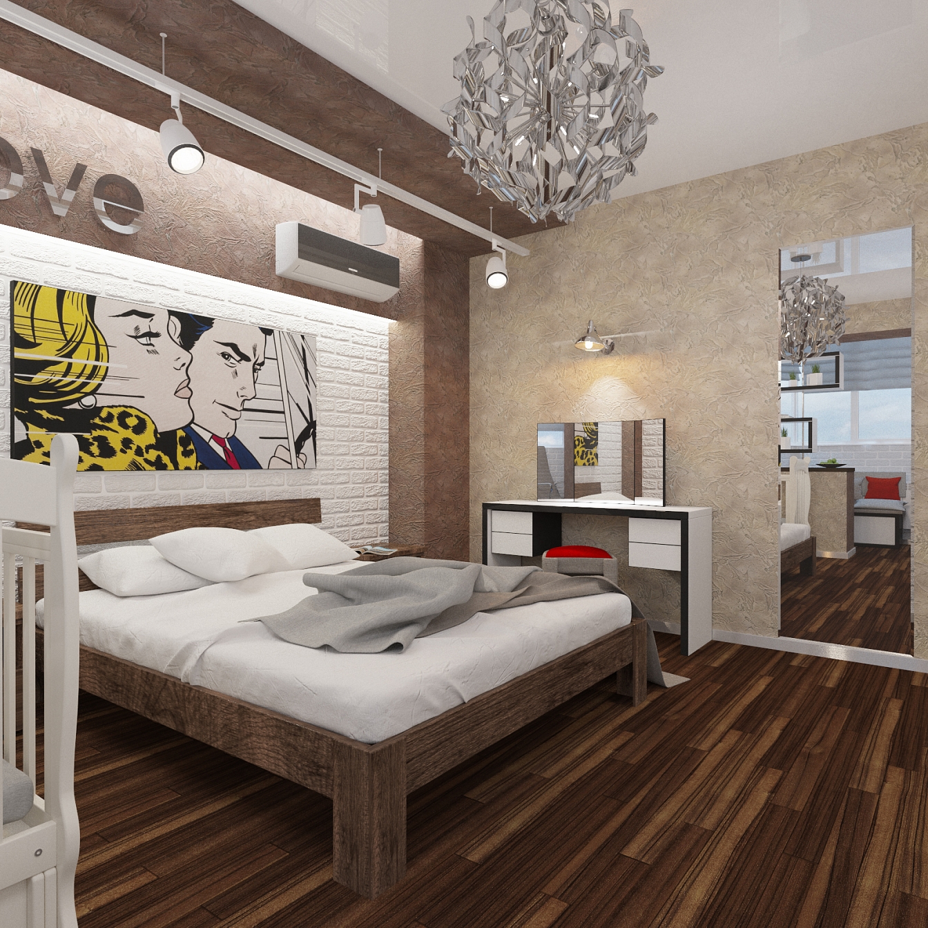 Интерьер квартиры предназначен для молодой семьи с двумя детьми. Предпочтения отдавались прочным, устойчивым материалам, как например, кирпич и декоративная штукатурка с грубой фактурой. Массивное дерево в мебели сочетается со стеклянными дверями и стальными фасадами на кухне. Получилась необычная, стильная квартира.