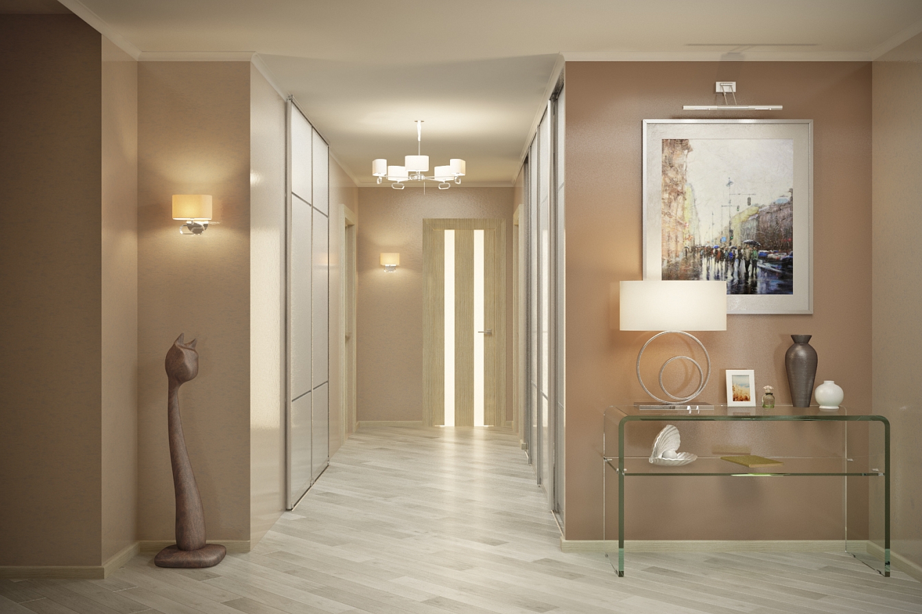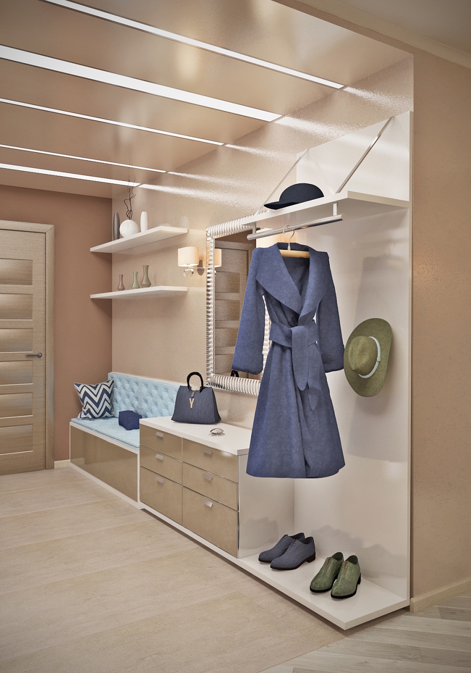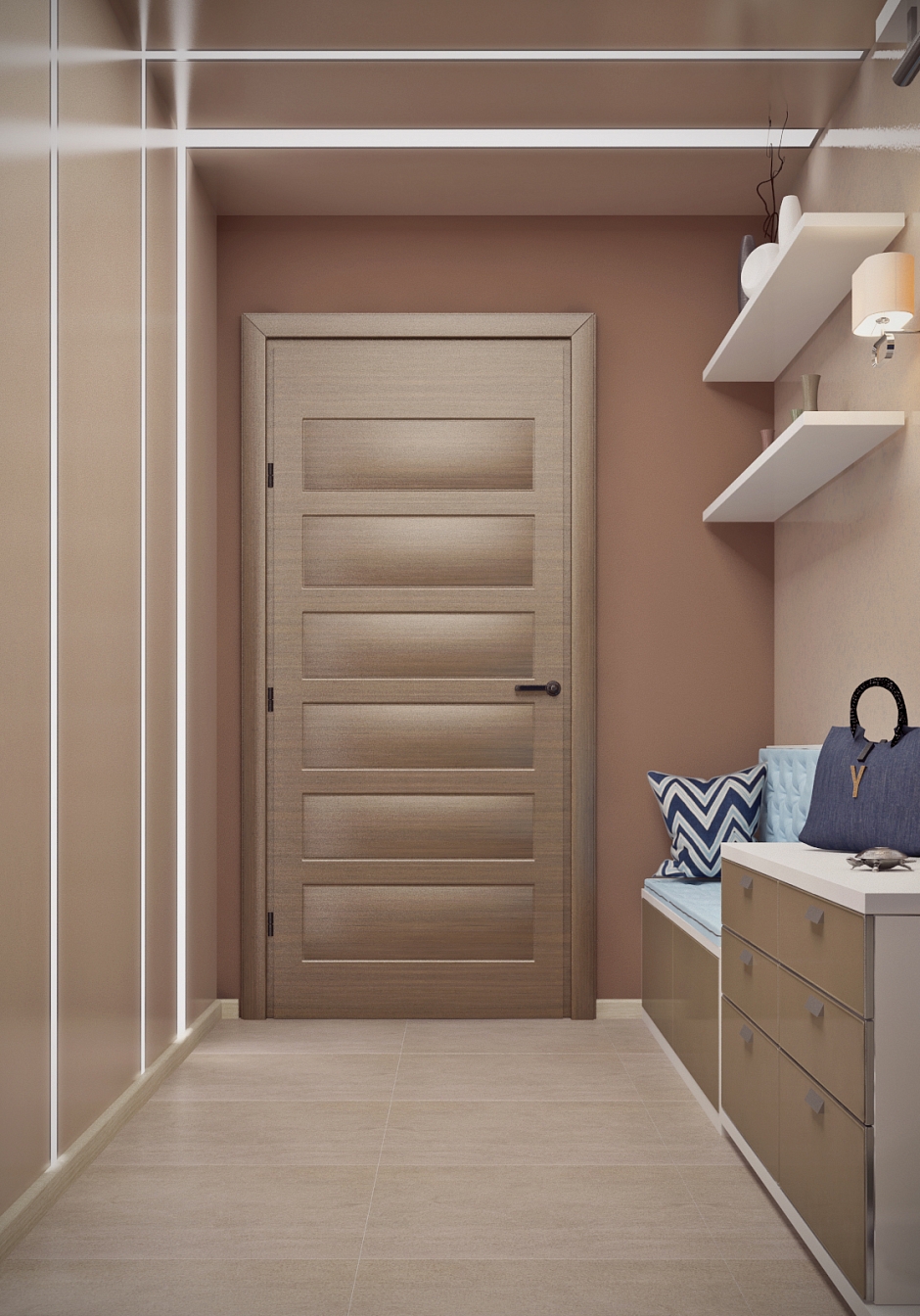 В прихожей линейные светильники и глянцевая покраска ломают пространство, психологически отделяя уютную квартиру от остального нестабильного мира.