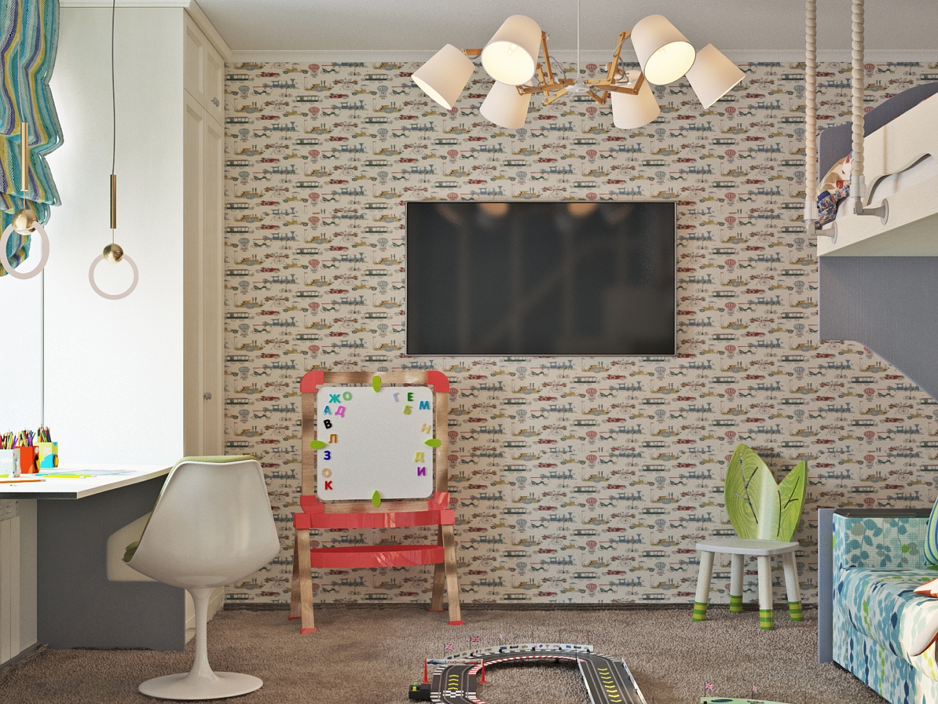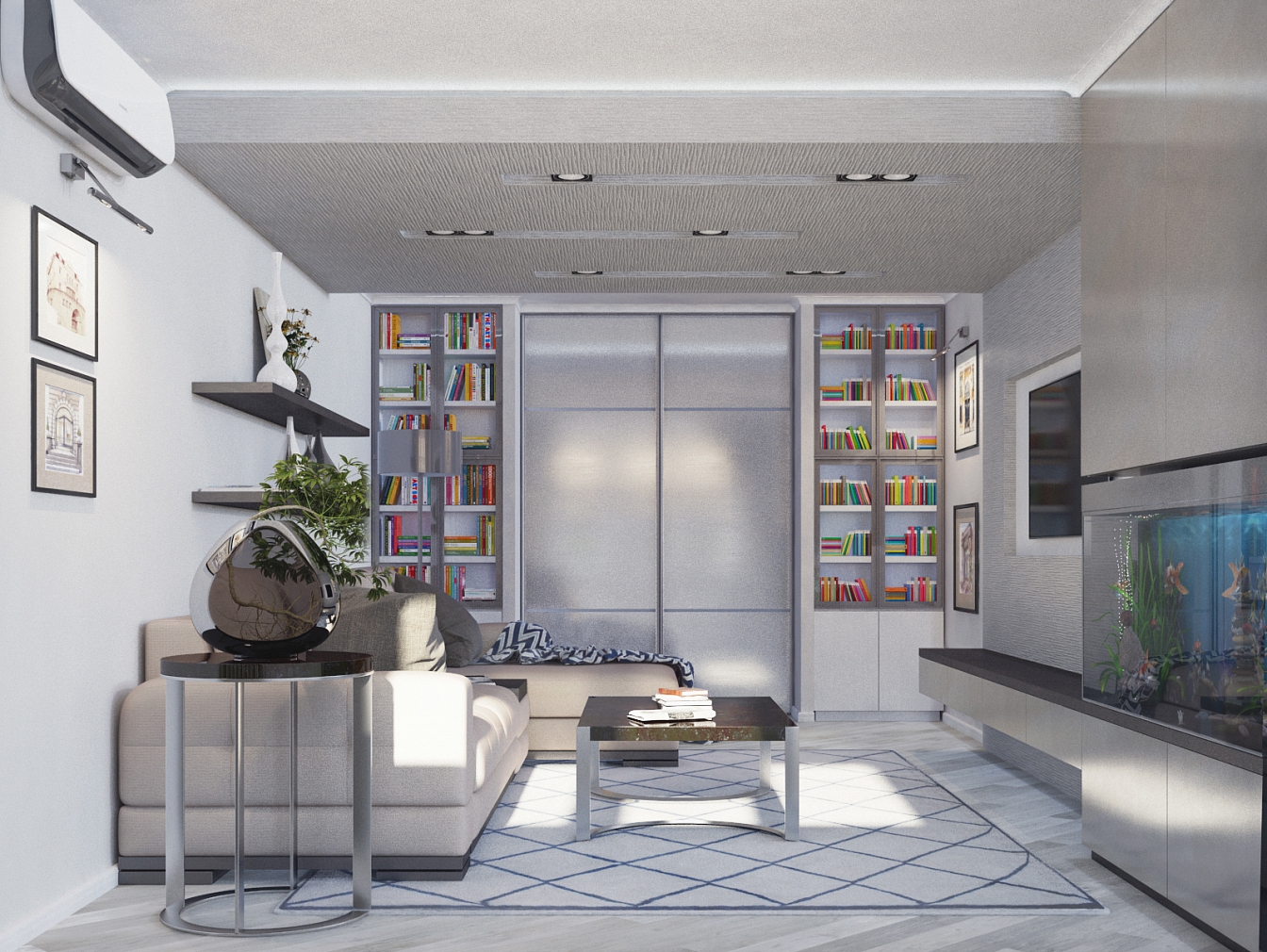 Квартира для семейной пары с ребёнком. Здесь использованы приёмы лёгкого стиля контемпорари. Для него характерны простые четкие формы. Отделка стен довольно простая - это покраска или однотонная штукатурка. Изящность достигается за счет оттенков цветов, освещения и аксессуаров.