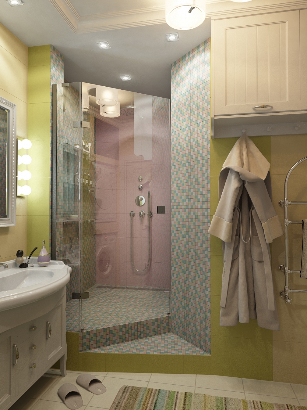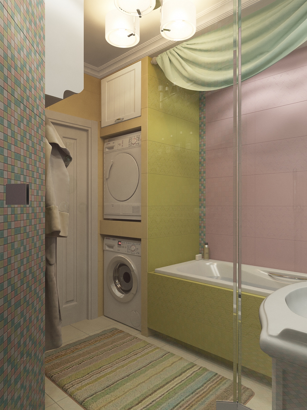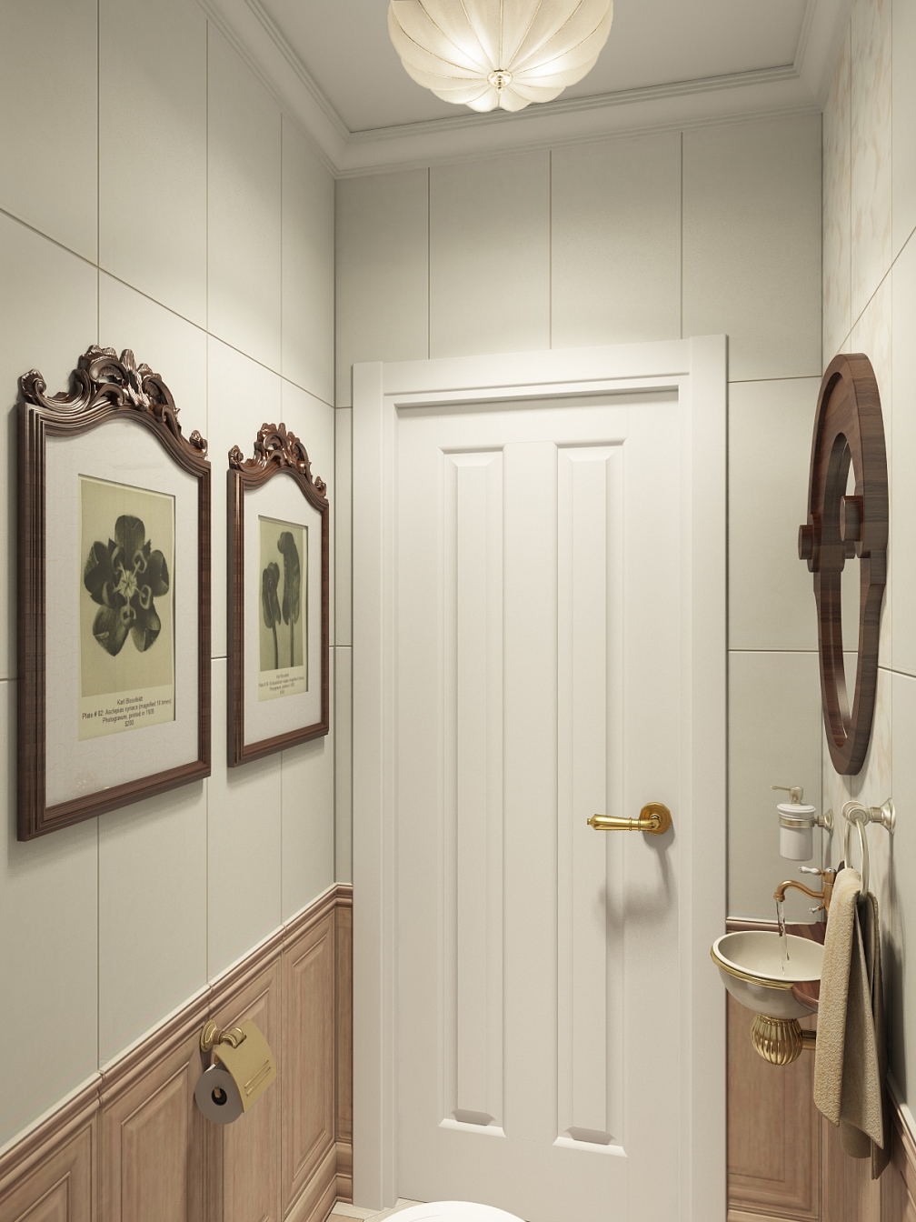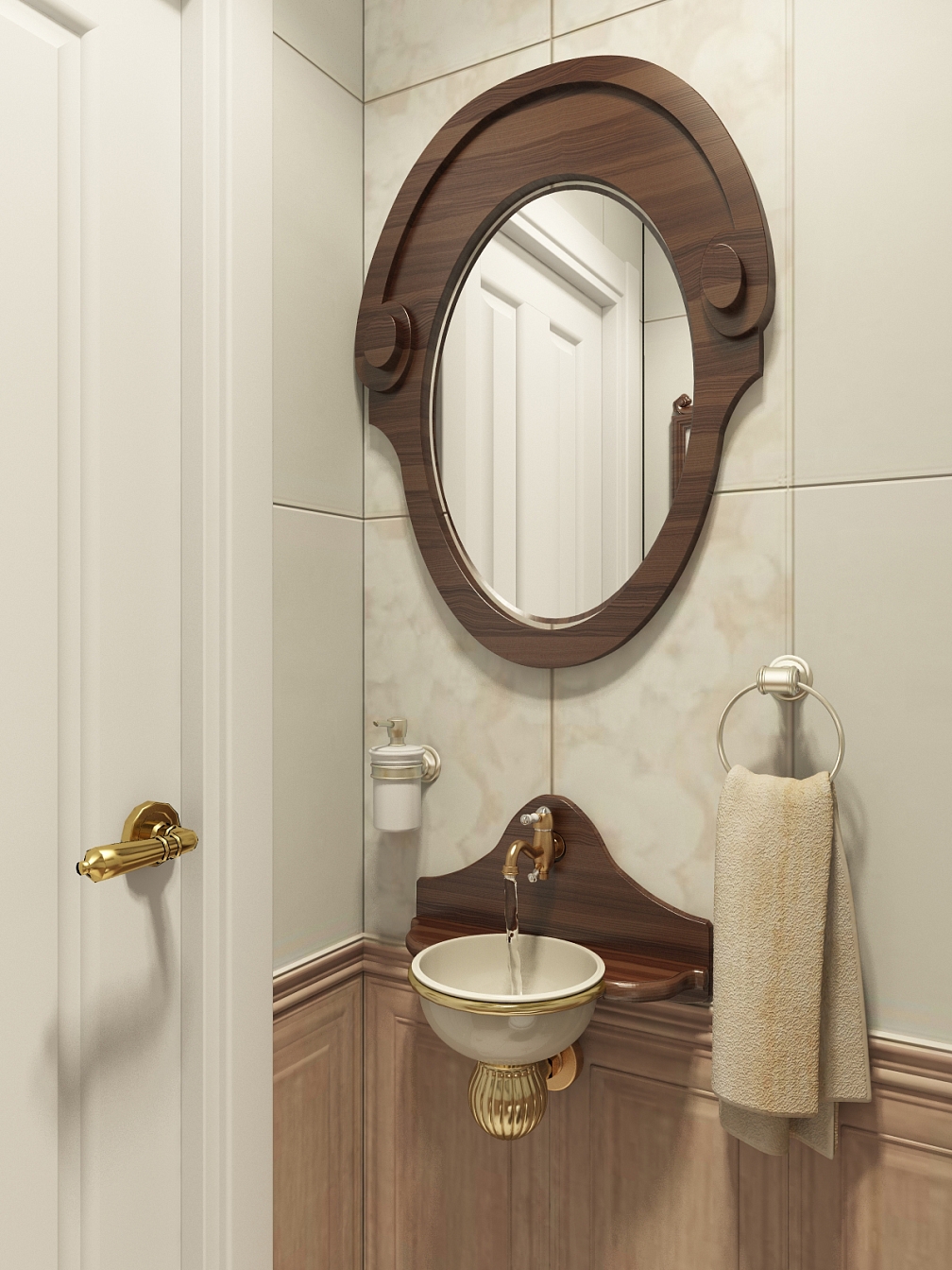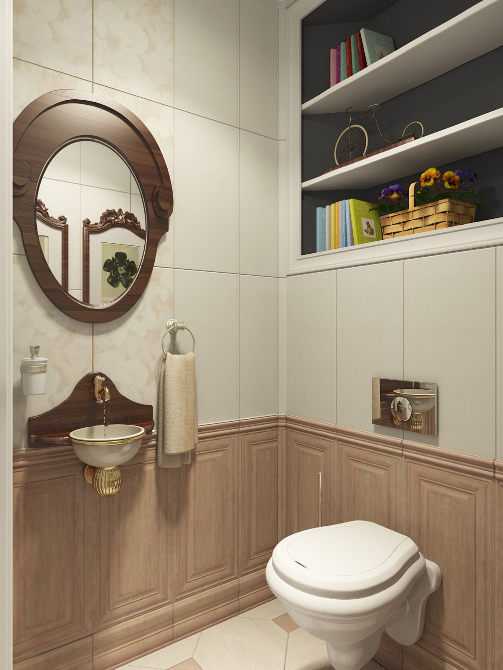 Заказчики не побоялись яркого желтого цвета для комнаты старшей дочери, смелого сочетания цветов для ванной комнаты. При этом остальные помещения очень спокойные, степенные. Обои подчеркивают мягкость обстановки. Цветочный орнамент со стен коридора переходит в гостиную, меняясь в фоне.