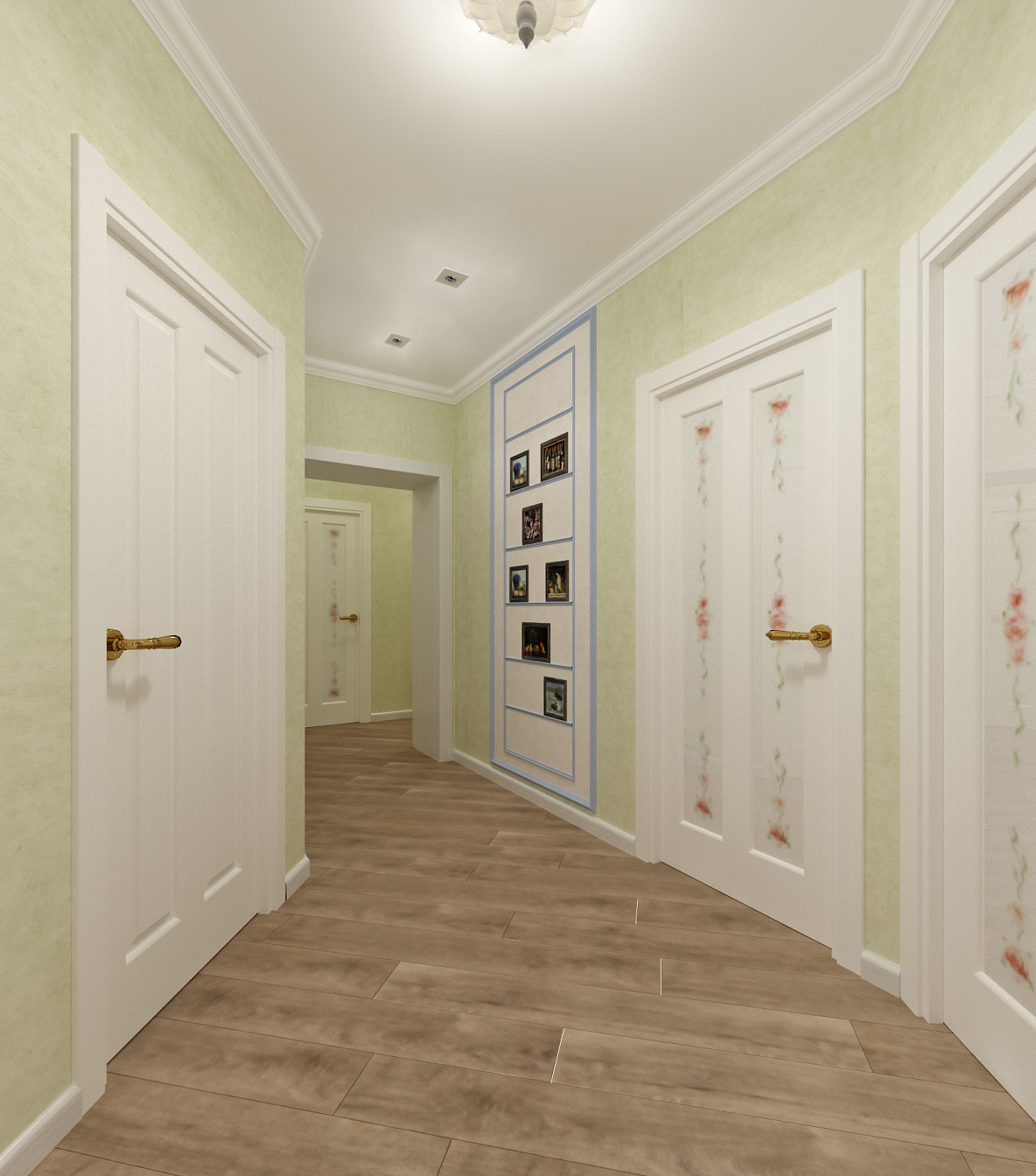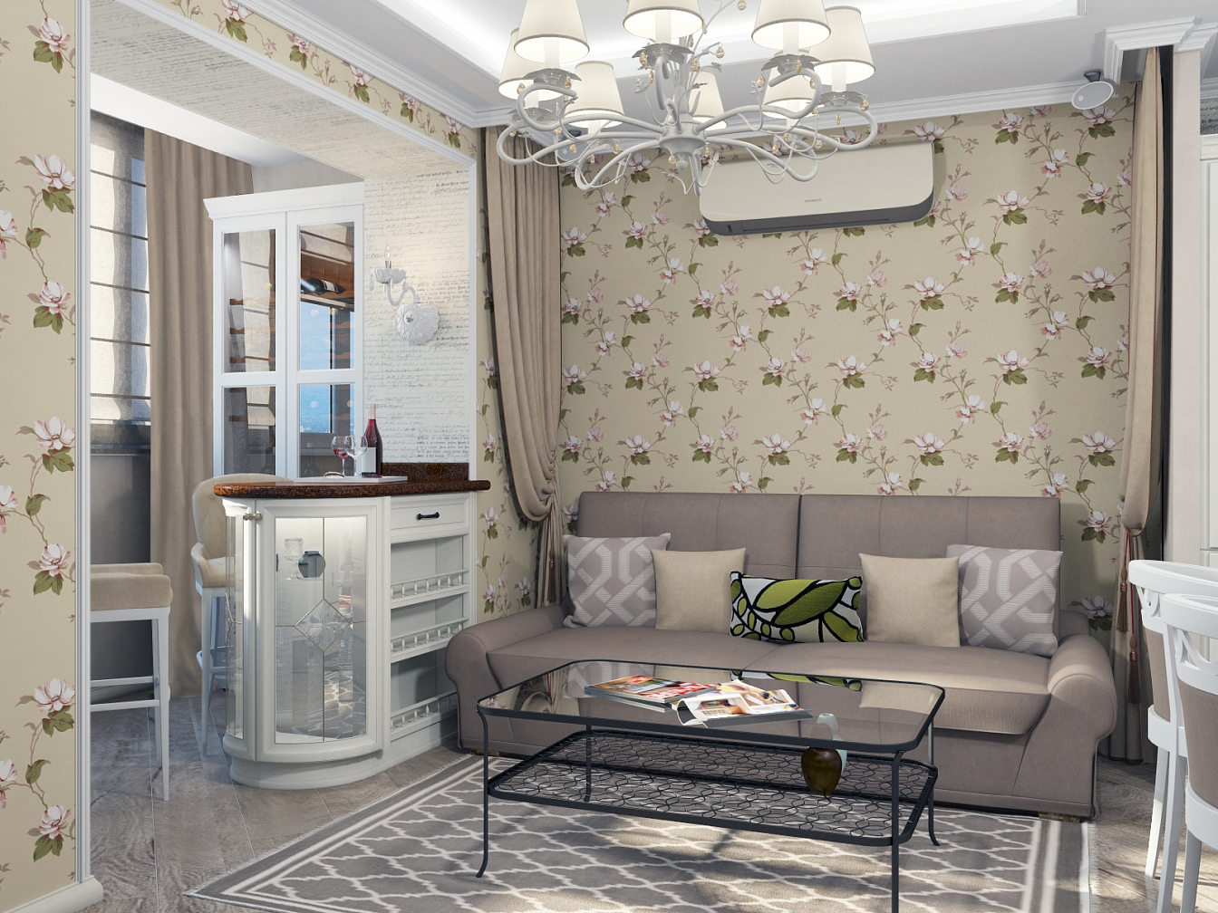В квартире хочется мягкости и уюта. Легкие оборочки на подушках, рамочки с фотографиями всех членов семьи – этого так не хватало хозяевам квартиры. Элементы прованса прекрасно вписались в общий дизайн. При этом атмосфера в квартире вполне современная.