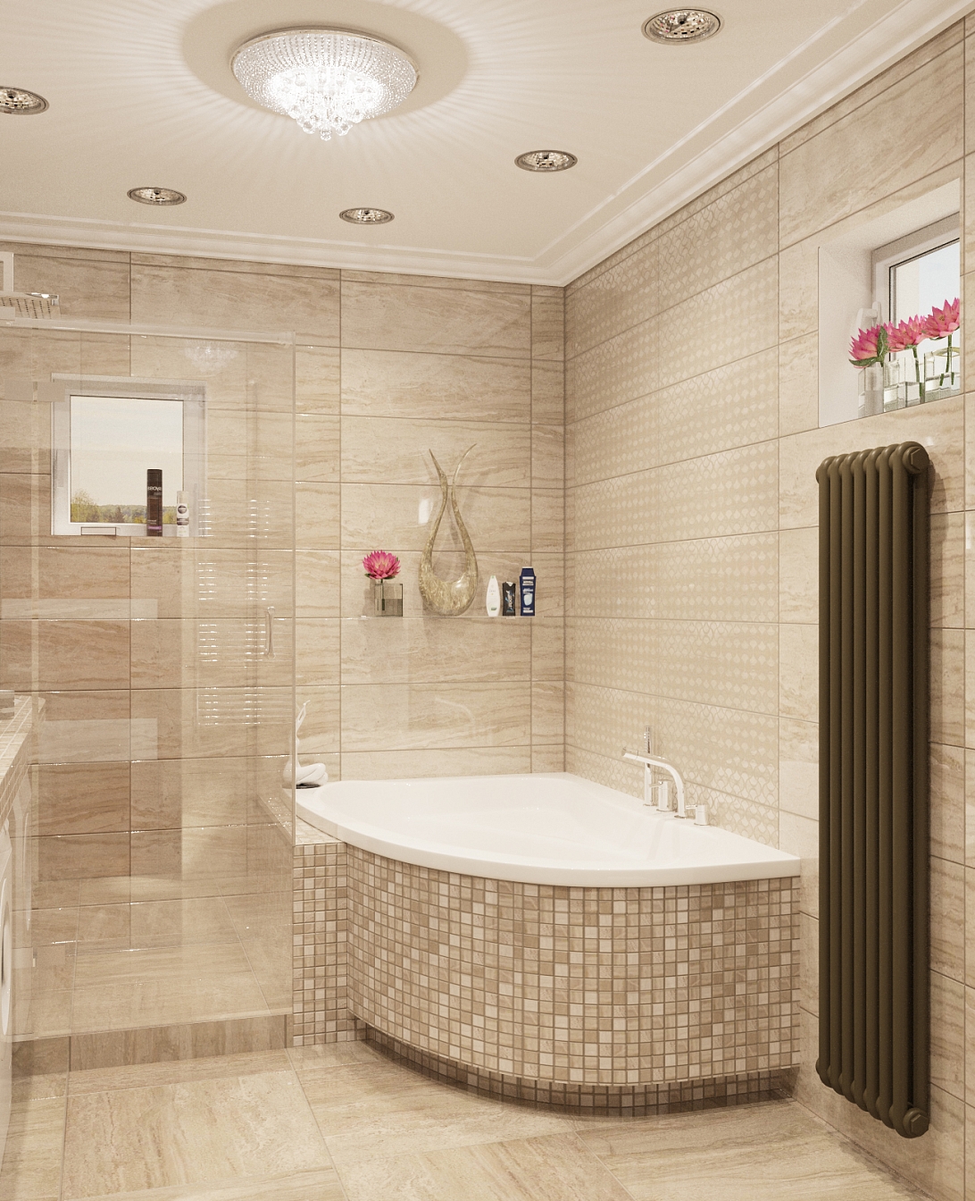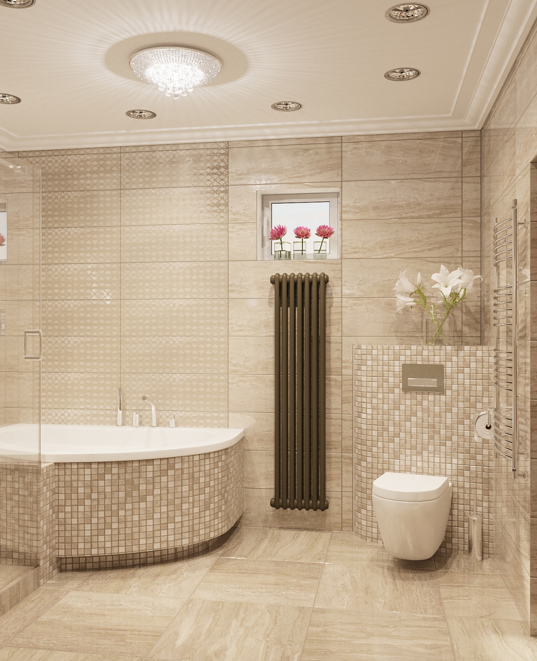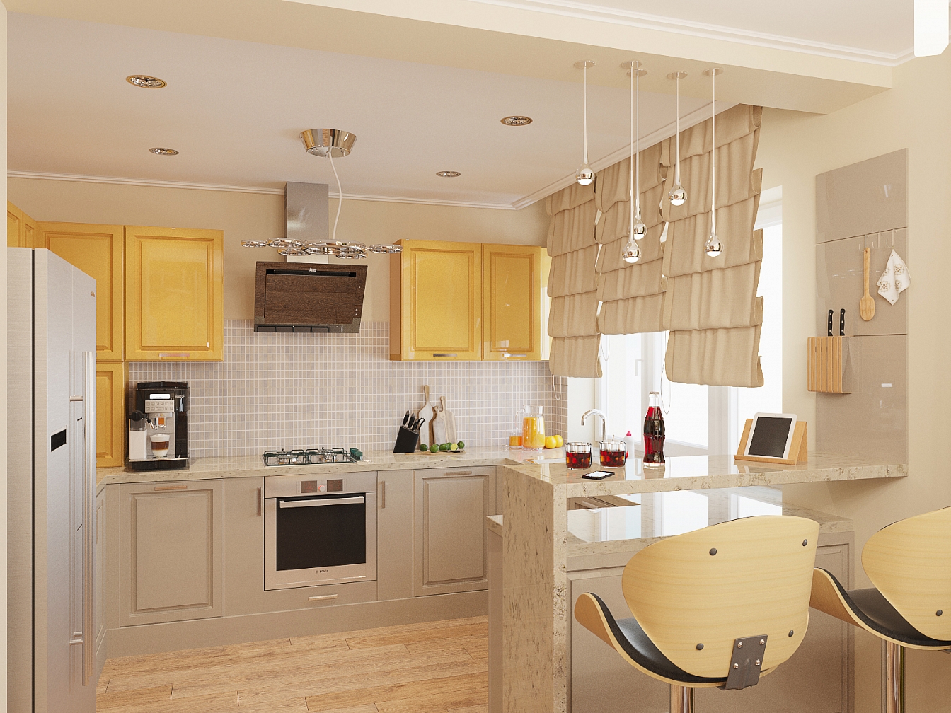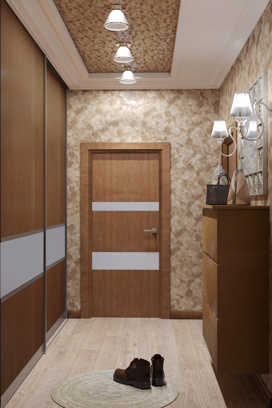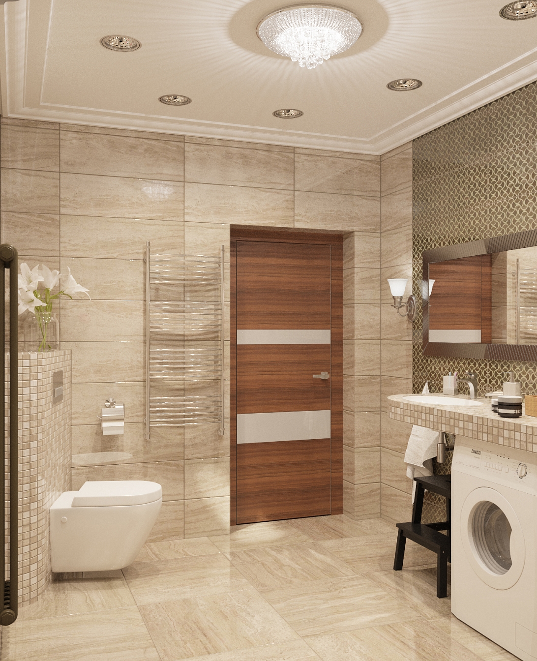 Мы попадаем в интерьер, полный контраста. Здесь насыщенная темно-коричневая штукатурка из прихожей переходит в гостиную. Круглая люстра Caboshe сочетается с зеркалом, оранжевые вставки в мебели контрастируют с мятным цветом дивана. Точечные светильники большого размера отлично дополнены потолочными карнизами. Выглядит вполне по-мужски. Кухня-столовая более женская, с цветочной фреской в зоне обеденного стола, желтой кухней и нейтральными стенами. Большие часы-зеркало отражают винтовую лестницу, которая ведет на второй этаж. Там расположено рабочее место хозяина и небольшой спортзал. Панели из дерева повторяют облицовку лестницы. В спальне мягкие стеновые панели и круглая кровать располагают к приятному отдыху. Детская для активного ребенка с сине-красными полосками.