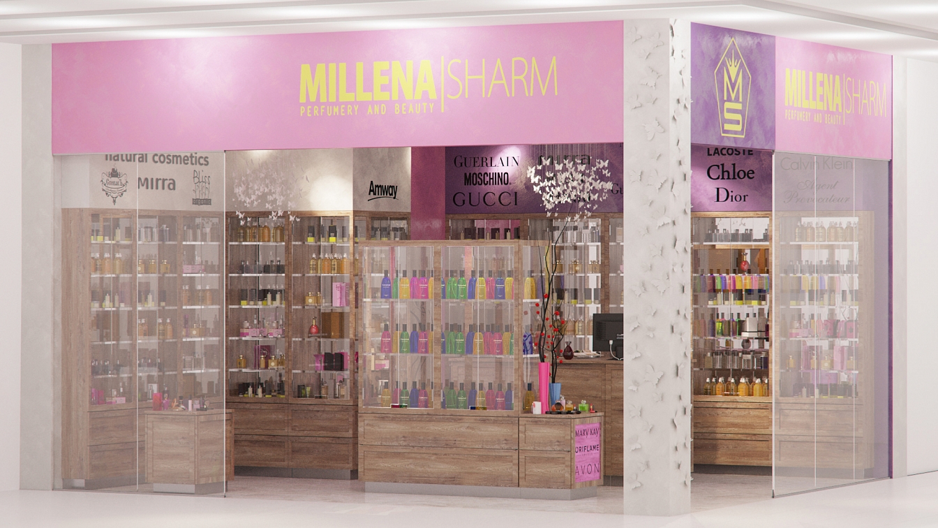 Лоск пространства, своеобразие цветовой гаммы имеют мало общего с традиционными, банальными интерьерами магазинов. MILLENA SHARM стал не просто местом, где можно встретить множество косметических марок, но и современным арт-пространством.