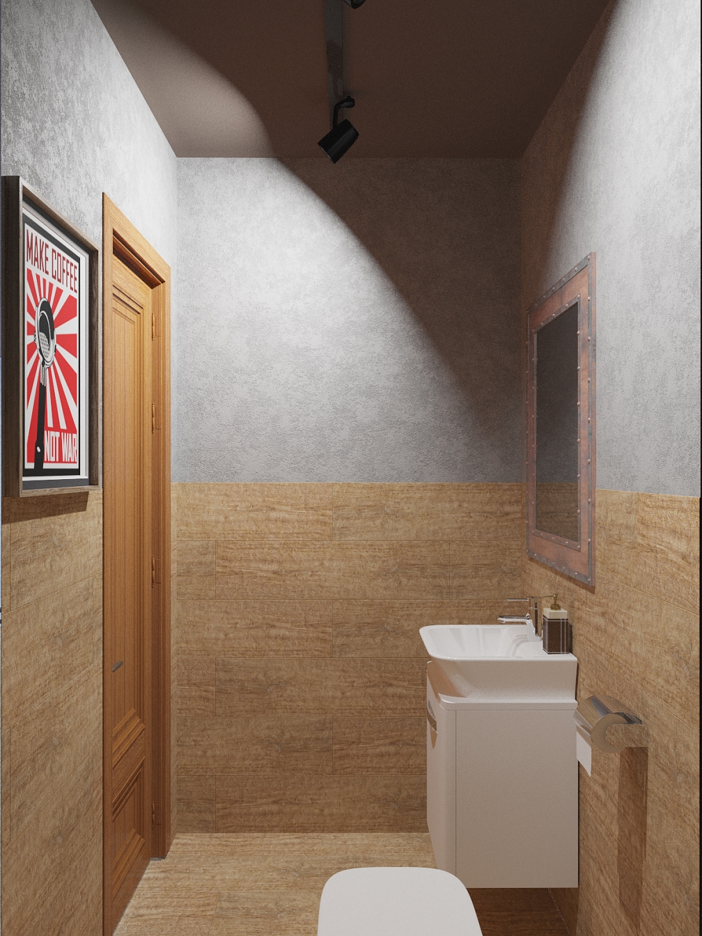 Дизайн производит впечатление сочетанием элегантных цветов, индустриальных и экологичных материалов, привлекает уютной атмосферой.