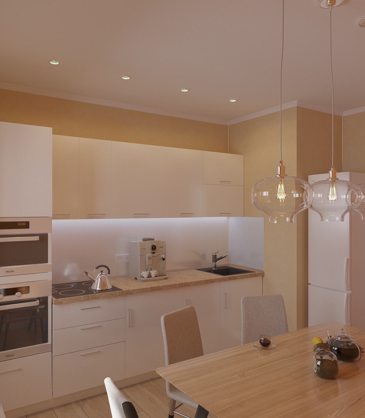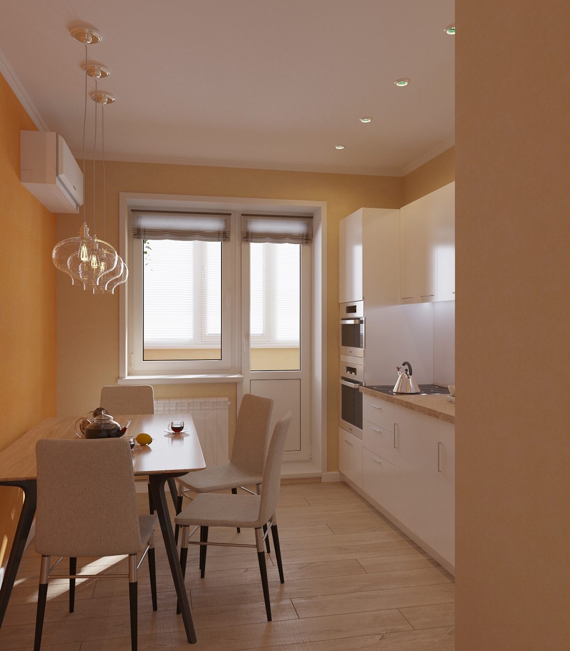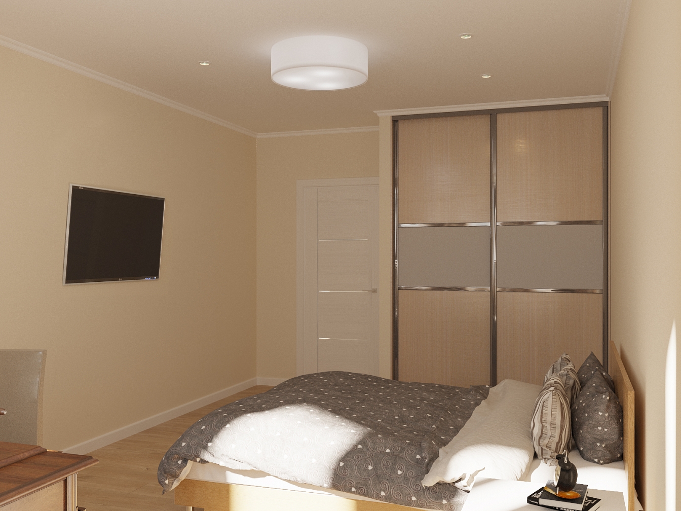 Доминирующие в цветовом решении стен пастельные тона визуально расширили пространство, а отличительными чертами интерьера стали компактность предметов и прямолинейность силуэтов.