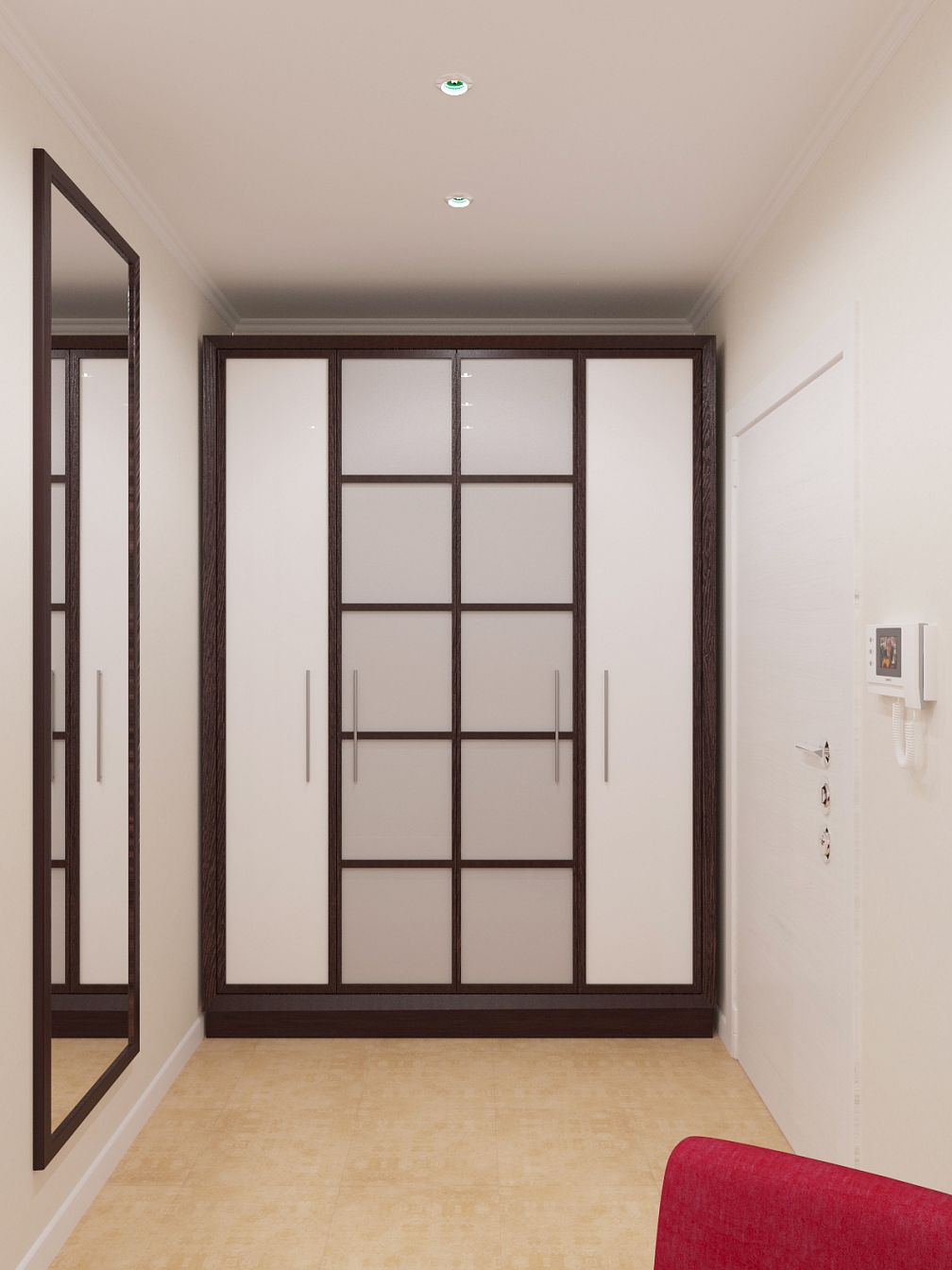 Интерьер квартиры отличается эргономичностью и оригинальностью, привлекая внимание сочетанием симметрии, рационализма и изыска.